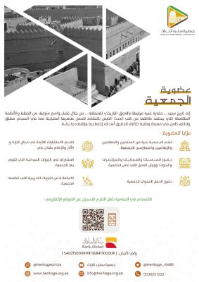 وتطمح الجمعية إلى أن يكون كل أبناء الوطن سفراء لهذا التراث العريق الشامخ ومتحدثين عنه في كل المحافل باختلافها وتنوعها.